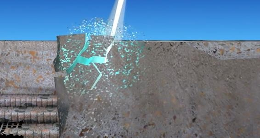 Böylece onarım yapılacak kısımlarda donatılar zarar görmeyecektir. Aynı şekilde bir bina yıkımı sırasında da iki ucu mesnetlerinden ayrılacak bir kirişi ele aldığımızda, kiriş betonlarının ayrışırken donatılarının yıkımın işleyişi açısından bir süre daha sağlam kalması gerekecektir. Su jeti basıncının değeri burada da betonu aşındıracak kadar fakat donatıya zarar vermeyecek ölçüde olmalıdır. Betonarme bir kirişte öncelikle mesnet bölgelerindeki beton sıyrılacak, sonrasında ise uygun bir ekipman ile ve güvenli bir şekilde donatılar kesilecektir. Su basıncı ayarlanamadığı taktirde yıkım aşamasında taşıyıcı elemanların gerekli süre ayakta kalması mümkün olamayabilecektir.