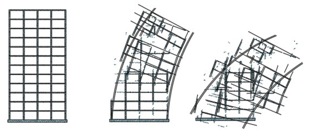 İkinci yöntemde Şekil 6.2’deki gibi yapının belirli bir yöne doğru devrilerek yıkılması sağlanır. Eğer binanın devrileceği alan yüksekliğini karşılayacak kadar değilse, devrilme esnasında kendi içine çöktürme mekanizması da uygulanabilir. Üçüncü ve son modelde ise yapı parça parça patlatılarak yıkım icra edilir.