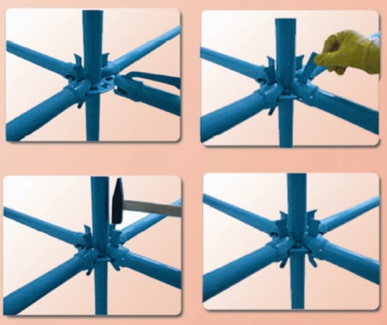 Dikey elemanlar üzerinde bulunan flanşlara, yatay elemanlar ucuna takılan kurtağzı-kama sisteminin çekiç vasıtasıyla kitlenmesi ile oluşturulur. Dikey elemanlar ise birbirine geçmeli şekildedir (Şekil 5).